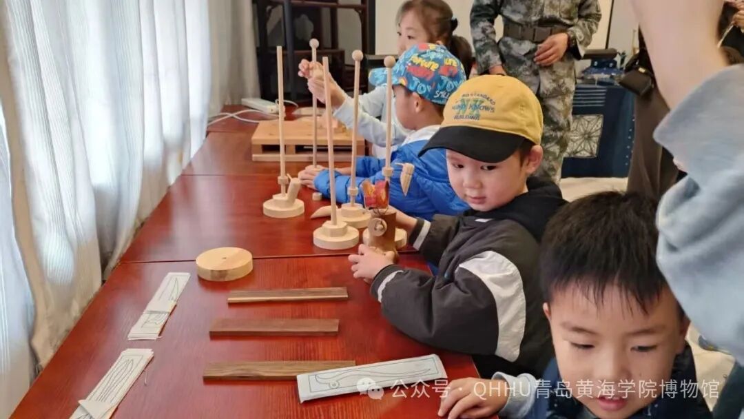 “哇,这个啄木鸟好好玩!”“看我拼的小椅子!”在木工作品体验区,程老师带着小朋友们认识木工工具,讲解榫卯结构的奇妙。大家动手尝试操作木工作品,感受木头“变身”的乐趣,在玩一玩、转一转中,体会传统工艺的精巧与趣味,不少小朋友直呼:“木工太好玩啦,我以后还要来!”