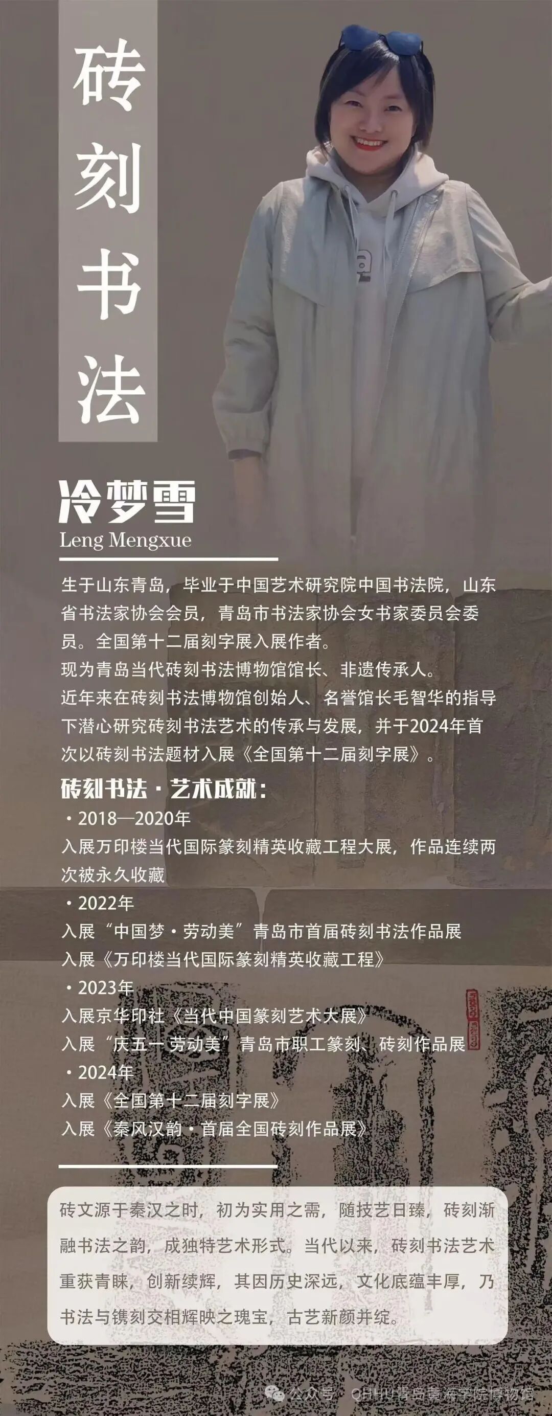 为什么这堂研学课值得期待?离不开专业导师的加持!本次课程由砖刻书法非物质文化遗产第四代传承人冷梦雪老师亲授。