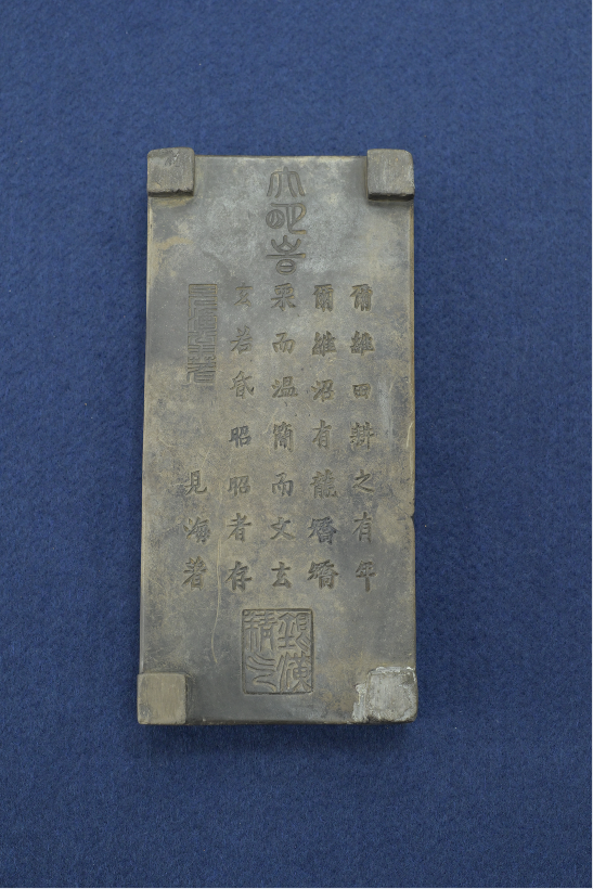 2、背面题铭:“尔维田耕之有年,尔维沼有龙矫矫。栗而温,简而文。玄玄若昏,昭昭者存”,译意为 “你如良田可耕出岁月,如池沼藏有矫健之龙;既庄重温和,又简约有文气。看似混沌,却藏着分明的本真”, 写尽文人 “外简内秀、藏锋守拙” 的品格;