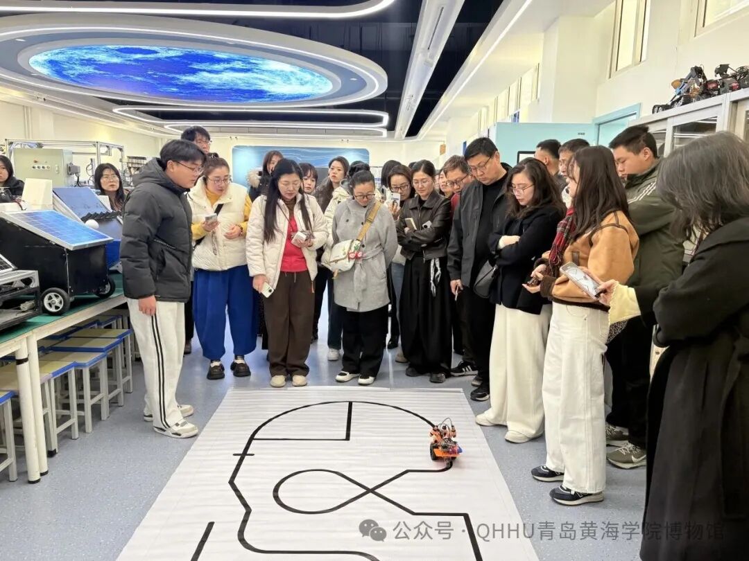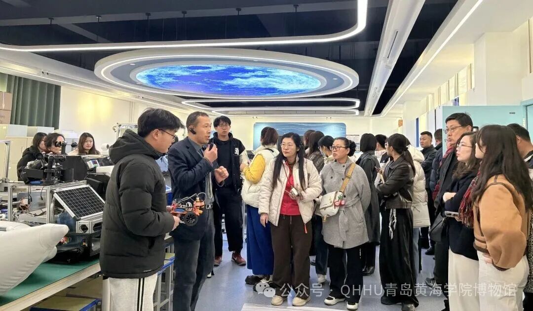 嘉宾团一行循着我们精心规划的研学路线,依次走进各特色点位,全方位、沉浸式感受青岛黄海学院的办学特色与研学资源优势,深切体会学校以 “四文化” 育人理念为核心的教育实践内涵。