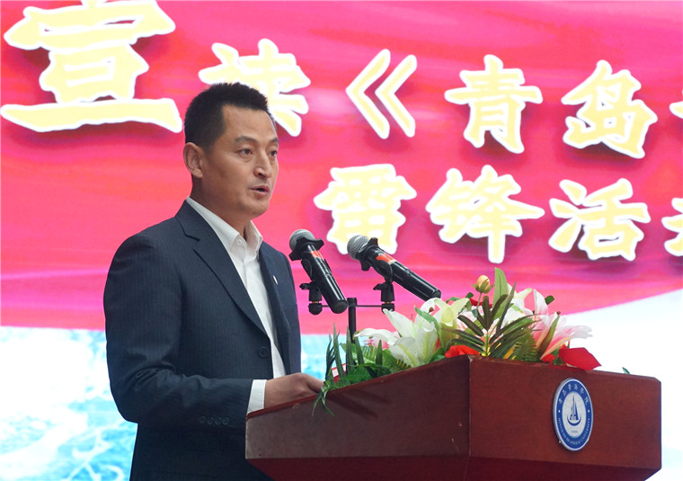 学校武装部副部长、雷锋班二十一任班长李桂臣宣读《青岛黄海学院2020年新生学雷锋主题教育实践活动方案》,校学生会执行主席张喆宣读《“走近雷锋、学习雷锋、践行雷锋精神”倡议书》。