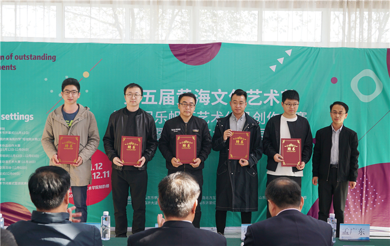 艺术学院院长马延岳致开幕词,合作企业代表青岛城心引力科技有限公司总经理 蒋礼、教师代表环境设计系主任杨元帅、优秀学生代表2018级绘画本科2班刘雅慧同学分别发言。