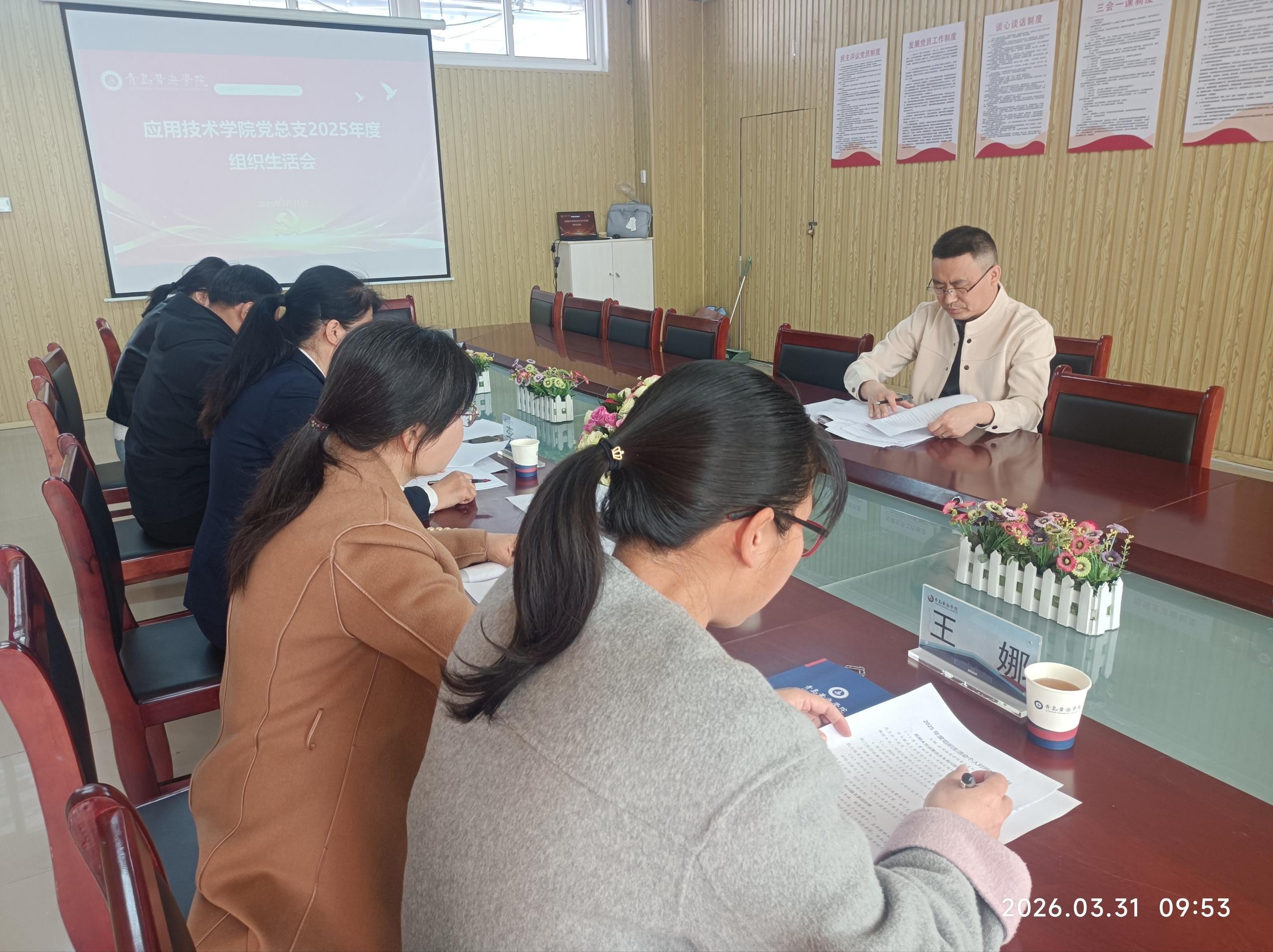 为深入推进党组织建设,严肃党内政治生活,切实提升班子凝聚力与战斗力,2026年3月31日上午9:50,应用技术学院党总支在知行楼401会议室召开2025年度组织生活会。监察处副处长、纪委办公室副主任陈永文出席会议,学院党总支班子成员全员参会,会议紧扣新学院、新党总支建设实际,扎实开展对照检查与批评自我批评,达到了检视问题、明确方向、凝聚共识的良好效果。