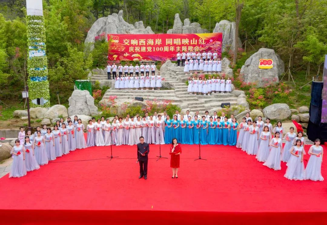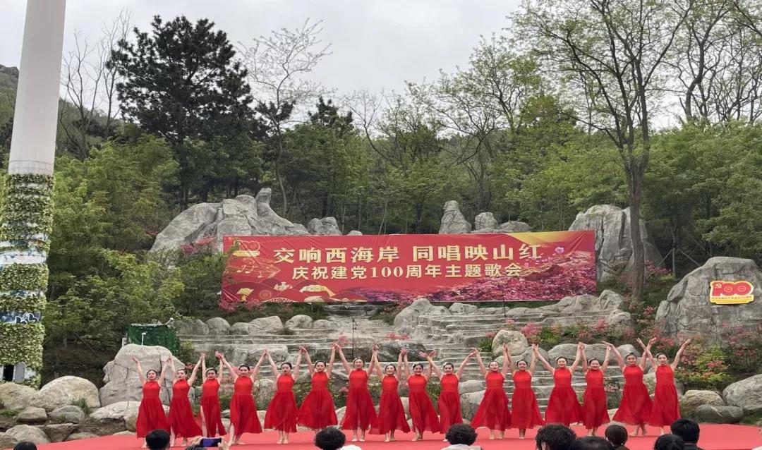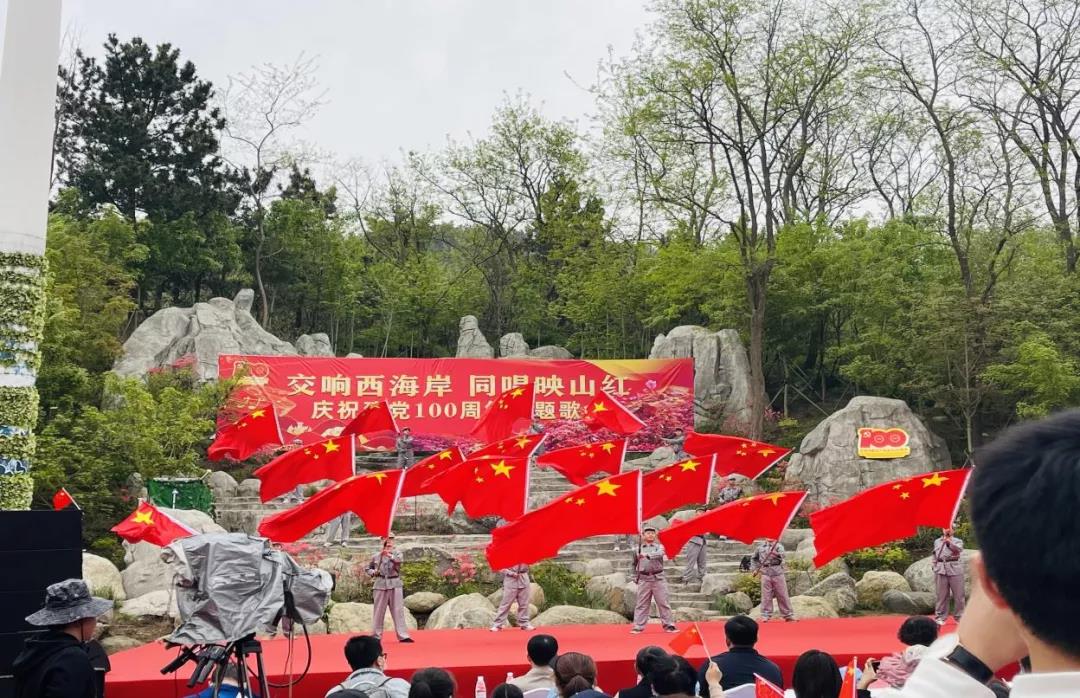 2021年4月29日,应青岛西海岸文化和旅游局的邀请,我校学前教育学院72名合唱队员与26位舞蹈队员由学前教育学院艺术教研室:葛月华、王佳莹、贾悦扬、李雪倩老师带队,前往大珠山风景区参加“交响西海岸,同唱映山红”建党100周年主题歌会的演出。