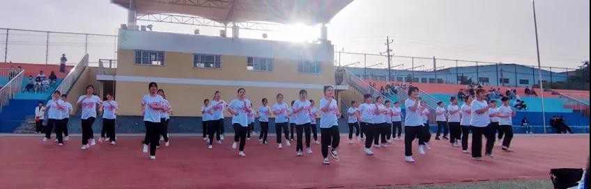 活动中,参赛选手伴随着欢快的音乐节拍,踏着轻快的节奏,时而绕成圈,时而分散,变换各种队列,表演如行云流水,灵动的手臂,稳健的步伐,让现场观众不断拍手叫绝。参赛选手的激情表演,将我校学生的蓬勃活力和良好的精神风貌展现的淋漓尽致,伴随着一首首经典的红色歌曲,整个比赛氛围浓烈,精彩不断,老师们的精彩舞姿将整个活动推向高潮,比赛在令人振奋、回味无穷的氛围中顺利圆满结束。