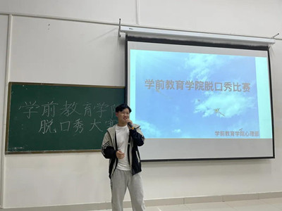 为促进大学生德、智、体、美全面发展,加强心理健康教育,学前教育学院学生会心理部本着五月心理月展开一系列与大学生心理相关活动。2021年5月16日晚,由心理部组织举办的学前教育学院脱口秀大赛在知韵楼001进行。出席此次活动的评委由学前教育学院学生会各部门部长组成。本次大赛旨在培养同学们缜密的思维,灵活的现场反应能力,全面提高同学们的综合能力,为同学们提供一个展现自我,锻炼自我,挑战自我的全新舞台。