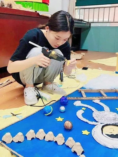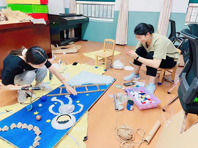 幼儿园环境创设是一名幼儿园教师所必须具备的一项基本技能,在我们进入东街幼儿园为期两周支教期间,幼儿园本着让我们支教老师拓展经验,能够长远发展的原则,将我们分为了教师组和环创组,其中五名支教老师在环创组开展了为期两周的支教生活。