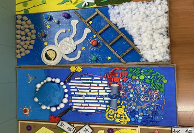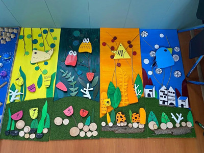 在环创工作中,幼儿园给我们安排了一名优秀的环创老师带领我们一起进行环创工作,老师从色彩搭配、材料准备以及主题理念对我们进行了培训。我们支教老师了解创设的基本要求,并进行展板创设,老师对我们的创设的展板进行指导评价,指出了亮点与不足之处,并以此来装扮幼儿园的公共环境!