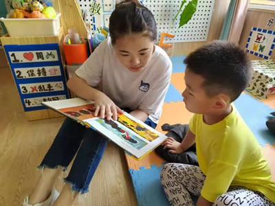 (张作欣、李楠:用爱与小朋友拉近距离。)
