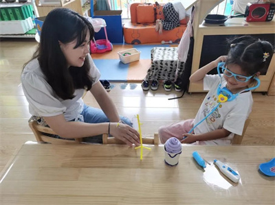 吕慧敏和李晓奇同学作为大三学姐,分别担任了小班和中班实习老师的责任,为给小朋友提供更舒适的环境,尽自己的力量。
