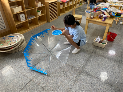 李楠、张作欣、冯俊科、王美旭四位同学入园后会先到达美术馆开始环创工作,她们仔细的勾画着每一幅画作,细心的涂染着每一个所能用到的材料,在一天结束之后她们会一起将美术馆的卫生打扫干净。