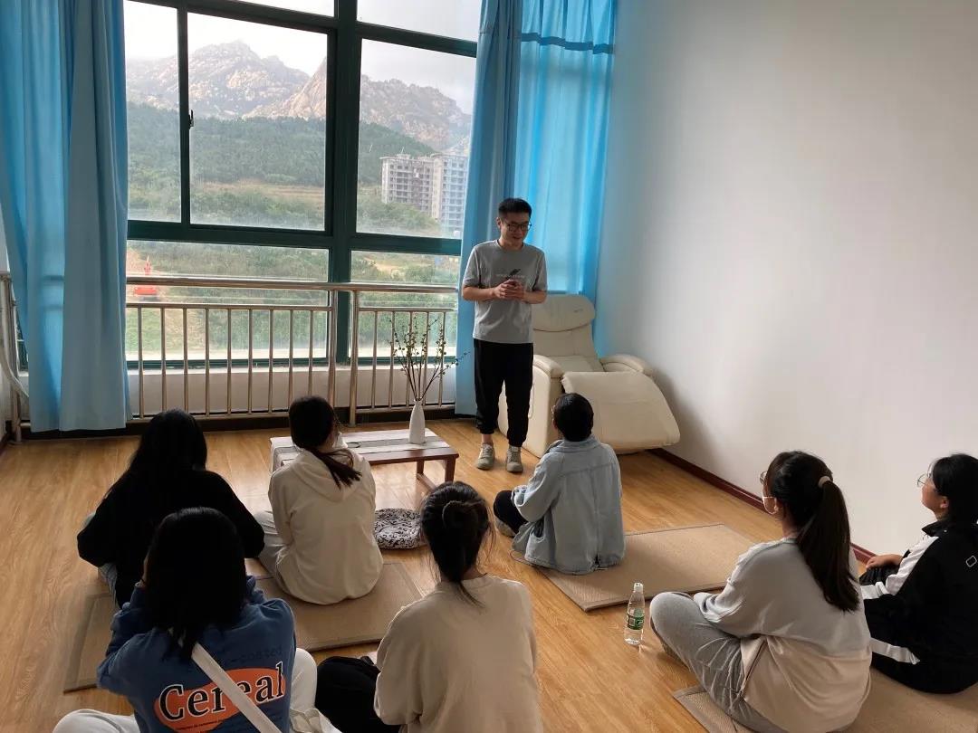 在音乐放松室为来访者提供各种放松训练条件,帮助来访者缓解各种压力、情绪的场地。李老师带领同学们体验冥想,同学们闭上眼睛,调整呼吸,放空自我,缓解自己的疲劳和压力。