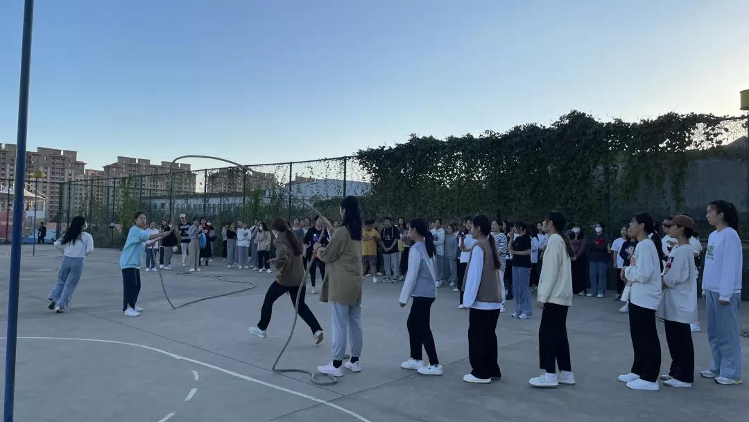 在张敏老师的一声“开始”下,现场瞬间火热起来,同学们争分夺秒,齐心协力,展现着团队的默契!整场比赛中,有她们拼搏的身影、有她们呐喊的身影,即使疲惫不堪、即使被绳子绊倒,但她们也丝毫没有放弃,并不气馁,而是互相鼓励着对方,她们迅速调整状态,逐渐和对方配合默契。场上响彻着整齐的口号:“1、2、3、4、5…….”