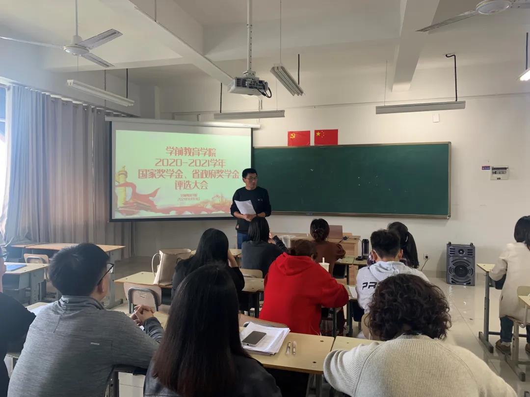 依据青教办关于《关于做好2020-2021学年学生资助工作的通知》文件要求,2021年10月12日下午,学前教育学院2020-2021学年奖学金评选大会在知韵楼503举办,学前教育学院院长助理王剑,毛玉蕊等教研室主任,学工主任主清华以及各班级辅导员出席本次会议。