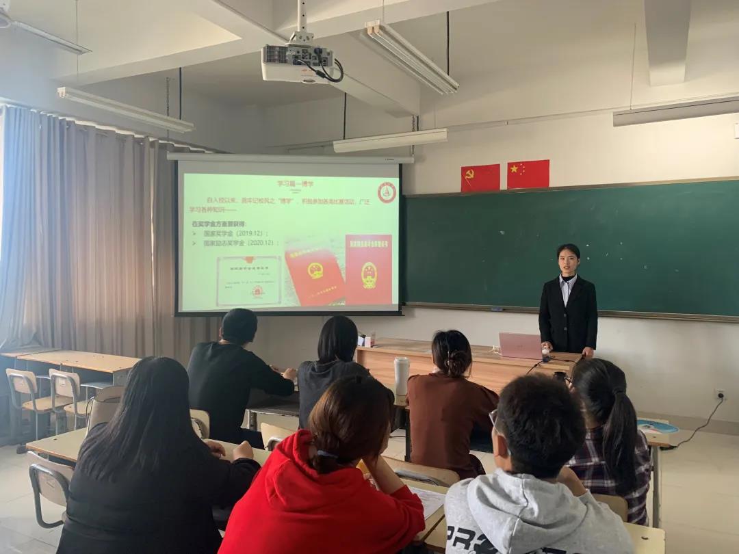 接下来,奖学金候选人结合PPT依次进行了演讲,他们围绕思想追求、学习情况、学科竞赛等显示了他们的不同风采。