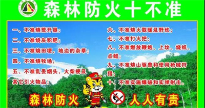 十、不携带火机、火柴、易燃易爆品进入山林。