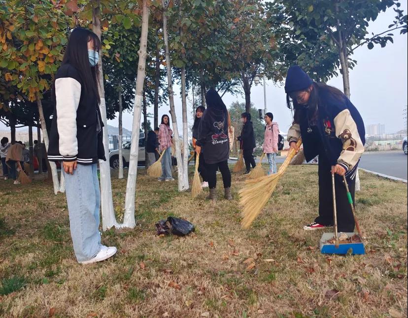 为创造一个美好的校园环境,提升学校环境卫生质量,进一步营造整洁、优美、文明、卫生的校园氛围。11月3日下午,学前教育学院自发组织卫生大扫除活动。学前教育学院院长助理王剑、学工主任主清华、学生会全体成员以及班级干部参与本次卫生大扫除活动。同学们在知韵楼集合,围绕知韵楼清除花坛和路边的杂草、落叶并清扫地面。