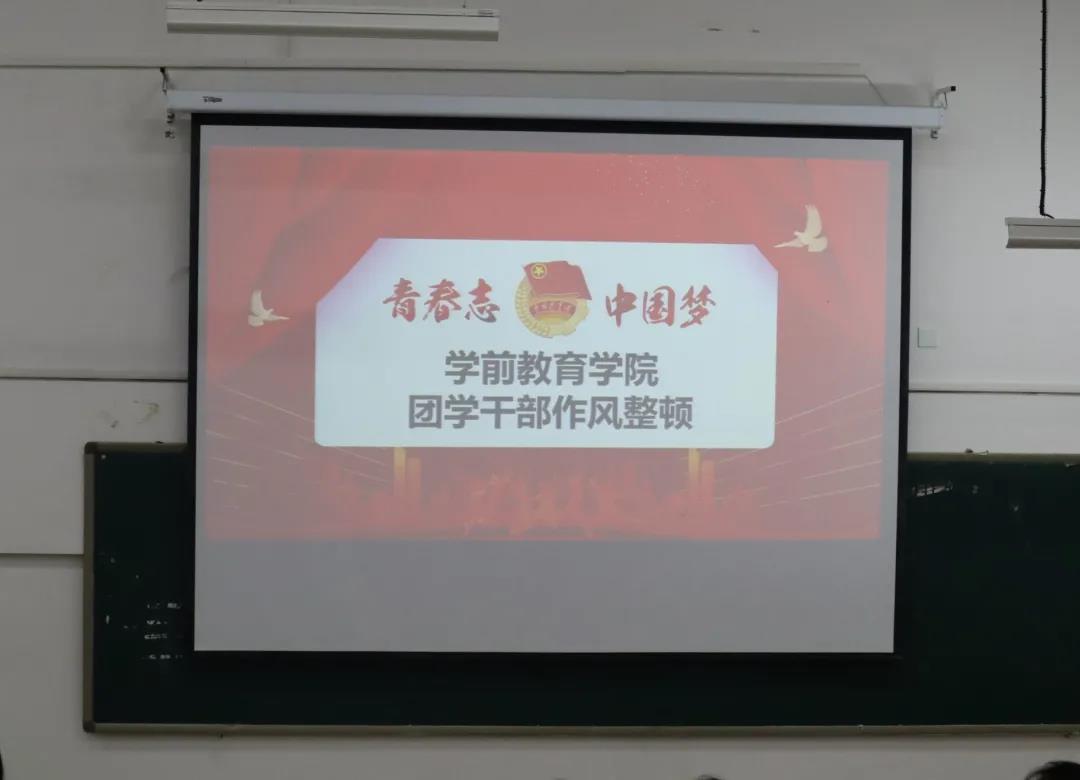 为推进团学干部作风整顿与党史学习教育有机融合,进一步加强团学干部队伍建设,提升团学干部工作作风,11月1日下午6时,学前教育学院团总支在知韵楼阶梯教室001召开团学干部作风会议,本次会议的主题是“严纪律、转作风、做表率、讲奉献。”