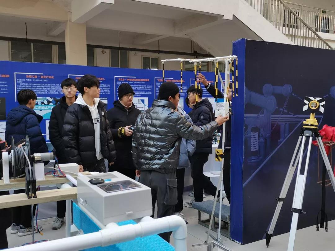 新颖、独特的科技展品一一陈列在教学楼外的展台上使同学们大饱眼福。展示区你可以看到不同院系同学在其中设置体验环节。一系列展品吸引了许多同学的驻足,他们各自在展台前饶有兴致的研究着。展览期间每个展台前都有专业人员为大家做讲解经过耐心细致的讲解后同学们纷纷上前亲自动手尝试操作一番并不时的询问讲解人员这其中的原理对展品有着极大的兴趣。一件件展品参观实践下来同学们的好奇心都得到了极大地满足。