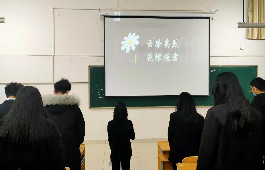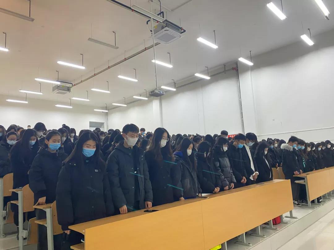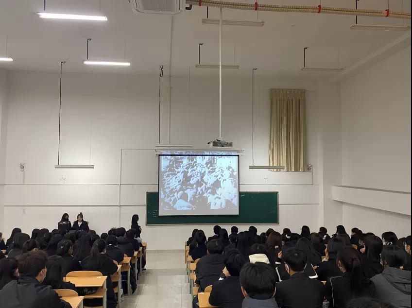 活动伊始,主持人与同学们共同回顾惨痛的历史,并观看南京大屠杀纪录片,向同学们讲述“南京大屠杀”那段令人刻骨铭心的历史事件。而后,全体起立默哀三分钟,悼念在84年前不幸遇难的30万同胞。默哀中,全场寂然无声,全体学生沉浸在追思同胞、勿忘国耻的氛围中。