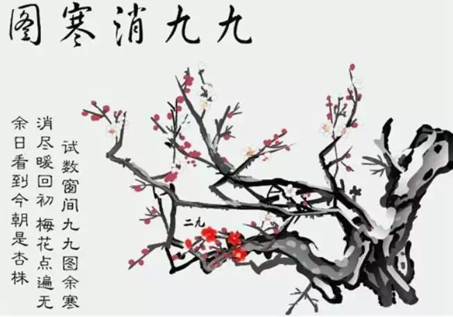 冬至一到,开始数“九”。在古代,入九以后,文人墨客喜欢搞消寒活动,择一“九”日,相约九人饮酒(“酒”与“九”谐音),席上用九碟九碗,成桌者用“花九件”席,以取九九消寒之意。