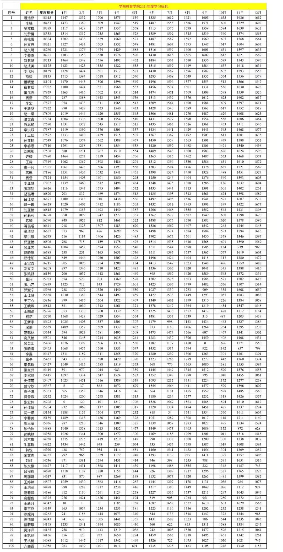 年度学习标兵榜单。未上榜的同学也不要灰心,继续努力!