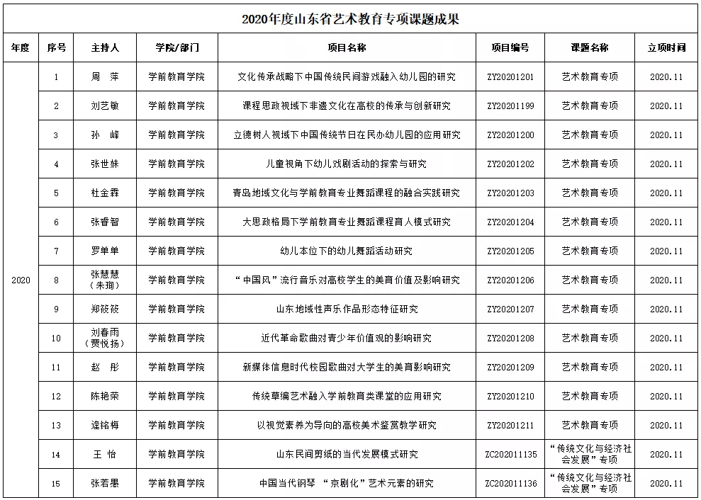 我院13项“2020年度省艺术教育专项课题”与2项“传统文化与经济社会发展专项课题”已顺利结项。