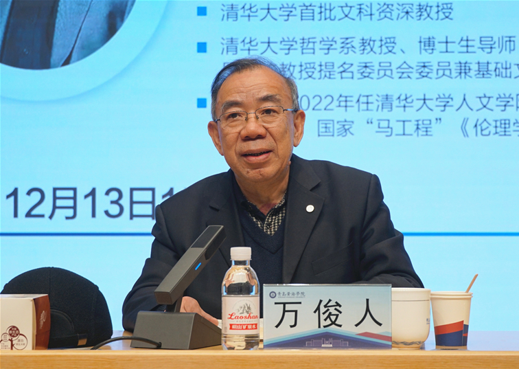 12月13日下午,国家文科一级教授,教育部长江学者特聘教授,清华大学首批文科资深教授、哲学系教授、博士生导师、人文学院原院长,青岛黄海学院顾问委员会主任、特聘教授万俊人以《大变局时代的知识与学习》为题与黄海师生同上一堂人文课。青岛黄海学院董事长刘常青,党委副书记、副校长孟广东等学校领导与师生代表一同聆听了报告会。报告会由校长助理孙在福主持。