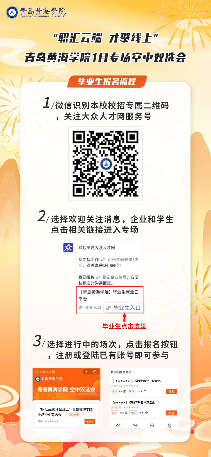 "职汇云端 才聚线上“青岛黄海学院1月专场空中双选会