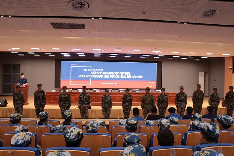 2025年9月7日晚,青岛黄海学院设计与美术学院2025级新生军训动员大会在知信楼B01举行。学院领导、各系部主任、军训教官、全体新生辅导员与2025级全体新生共赴这场青春之约,一同见证大学序章的开启,为新生们的“大学第一课”奏响庄严而激昂的序曲。