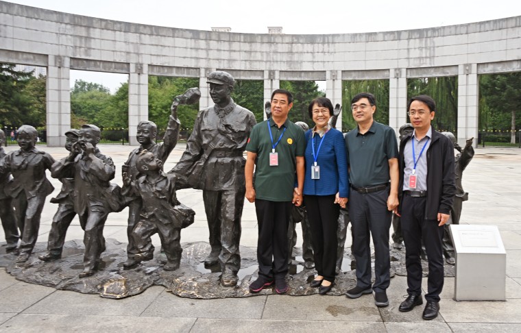 ▲刘常青董事长与雷锋辅导过的学生陈雅娟(左二)在抚顺市雷锋纪念馆合影
