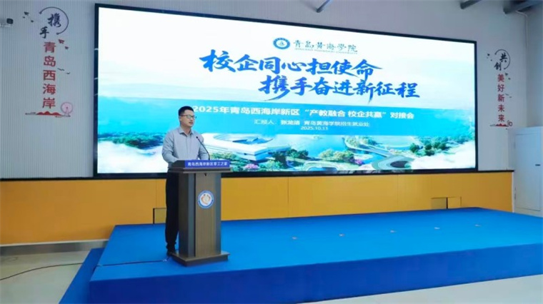 为进一步推动产业链、人才链、教育链深度融合,为新区高质量发展提供坚实的人才和智力支撑,2025年10月11日上午西海岸新区“产教融合 校企共赢”对接会在西海岸新区人力资源大市场隆重举行。本次会议由青岛市公共就业人才服务中心、青岛西海岸新区工委组织部和青岛西海岸新区人力资源和社会保障局联合主办。学校招生就业处处长助理张龙洁、合作发展处处长助理庄伟、创新创业学院副院长甄程及相关二级学院就业主任等一行代表学校参会。