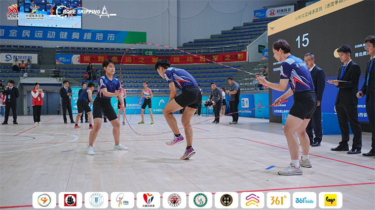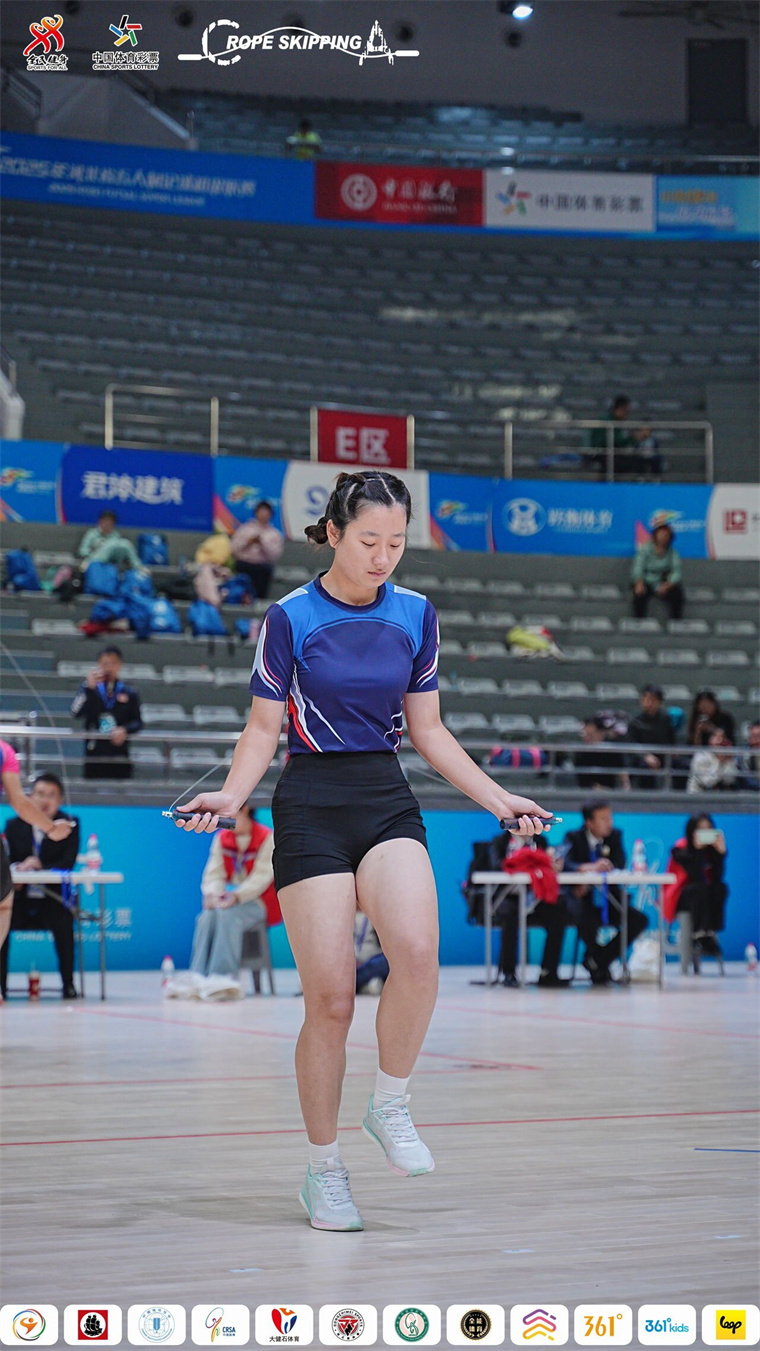 青岛黄海学院始终秉持“德育铸魂、智育固本、体育强健、美育浸润、劳育砺志”的“五育并举”育人理念,将特色体育作为培养学生健全人格、锤炼意志品质、促进全面发展的重要途径。我校跳绳代表队凭借过硬实力惊艳全场,尤其在交互绳与双摇跳项目中,以精湛技巧和稳定发挥力克北京大学、清华大学等强劲对手,成功斩获一分钟单摇跳并脚跳公开青年组第一名、30s交互绳速度跳公开青年组第一名、3分钟单摇跳公开青年组第一名、30s一带一单摇跳公开青年组第一名,两个第二名、30s交互绳速度跳公开青年组第二名、2×30s双摇接力公开青年组第二名等多项荣誉。