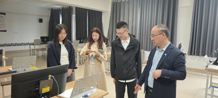 上午9时30分,贾全秋一行在孙守强的陪同下先后参观了知信楼、西区阅享空间、学院实验室。在各讲解人的细致介绍下,全面了解了我校的校园环境、办学设施及实验教学条件。