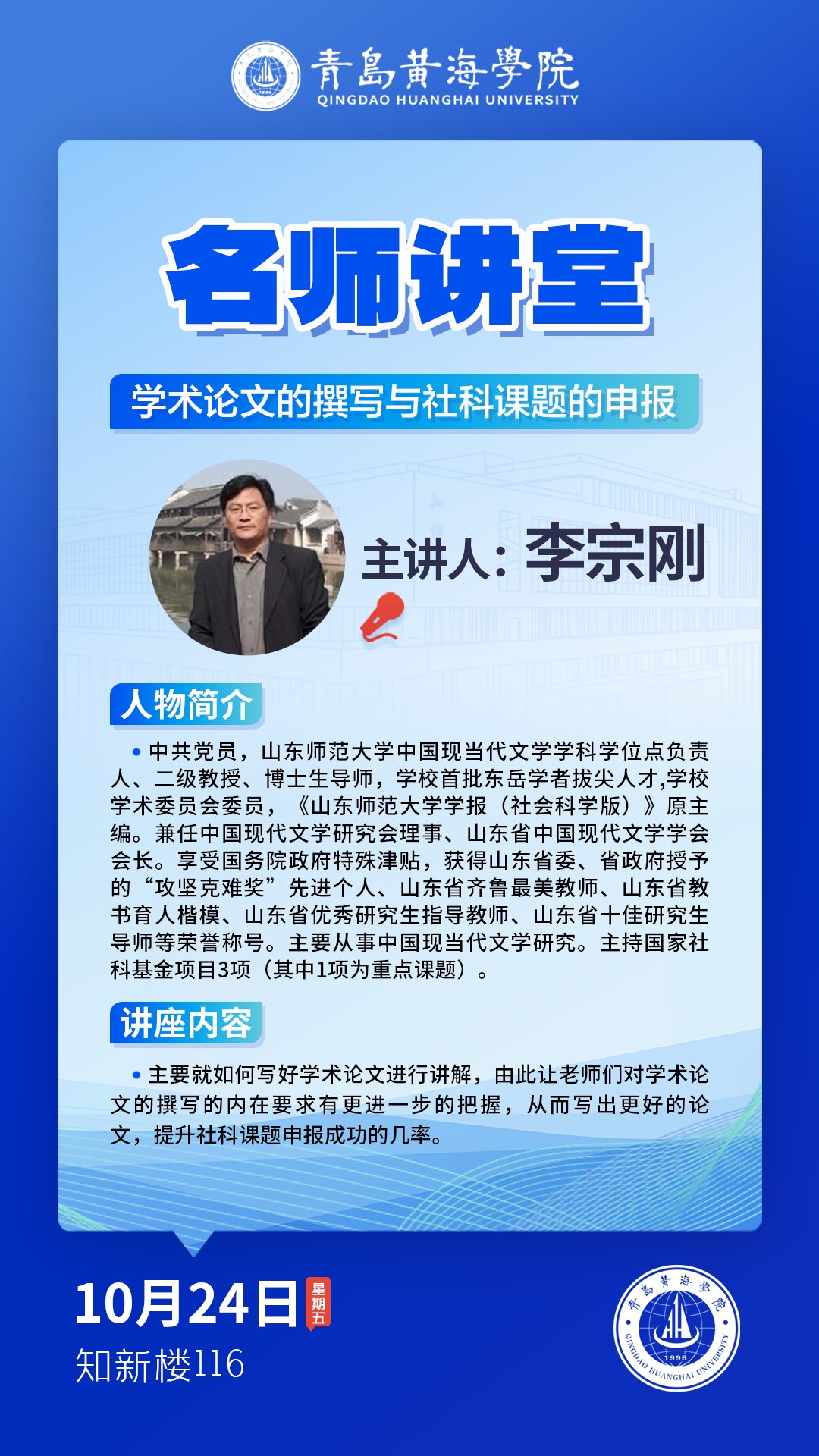 专家简介:李宗刚,中共党员,山东师范大学中国现当代文学学科学位点负责人、二级教授、博士生导师,学校首批东岳学者拔尖人才,学校学术委员会委员,《山东师范大学学报(社会科学版)》原主编。兼任中国现代文学研究会理事、山东省中国现代文学学会会长。享受国务院政府特殊津贴,获得山东省委、省政府授予的“攻坚克难奖”先进个人、山东省齐鲁最美教师、山东省教书育人楷模、山东省优秀研究生指导教师、山东省十佳研究生导师等荣誉称号。主要从事中国现当代文学研究。主持国家社科基金项目3项(其中1项为重点课题)。