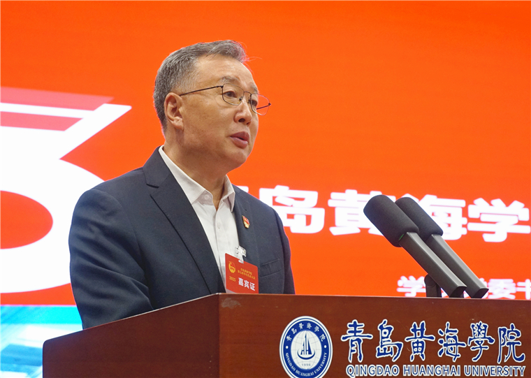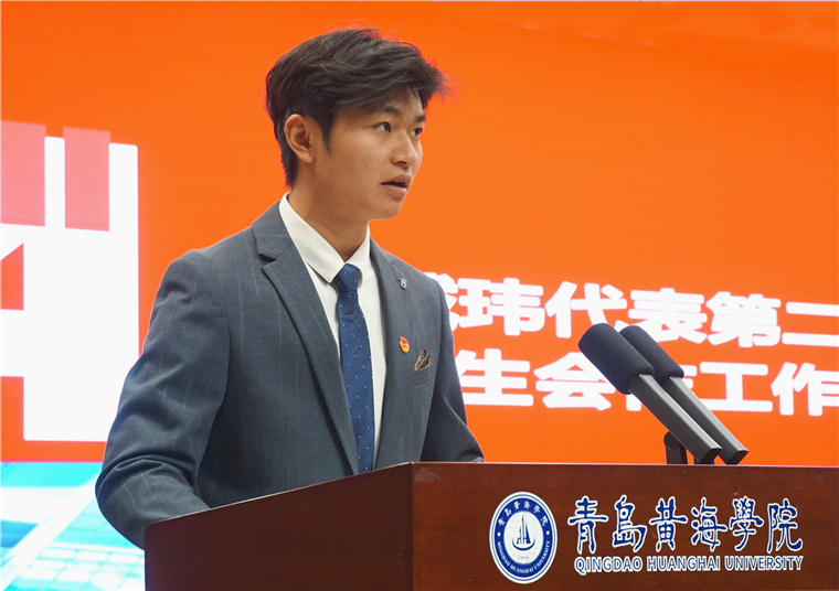 青岛黄海学院第二十五届学生会主席张城玮代表第二十五届学生会作了题为《传承黄海精神 接续奋斗新篇章 团结带领广大同学在学校高质量发展新征程中书写青春华章》的工作报告。他表示,过去一年,第二十五届学生会牢记服务宗旨,聚焦主责主业,在思想引领、成长服务、文化繁荣、实践锻炼和组织改革等方面开展了卓有成效的工作,取得了较好的成绩。他号召全校青年学子牢记习近平总书记的殷切嘱托,坚定不移听党话、跟党走,继续做理想信念的坚守者、勤学笃行的实干者、创新创造的开拓者、艰苦奋斗的奉献者,传承黄海精神,勇担时代重任,为学校加快建设特色鲜明的高水平应用型大学、为实现中华民族伟大复兴的中国梦贡献青春力量,让青春在全面建设社会主义现代化强国的火热实践中绽放绚丽之花!