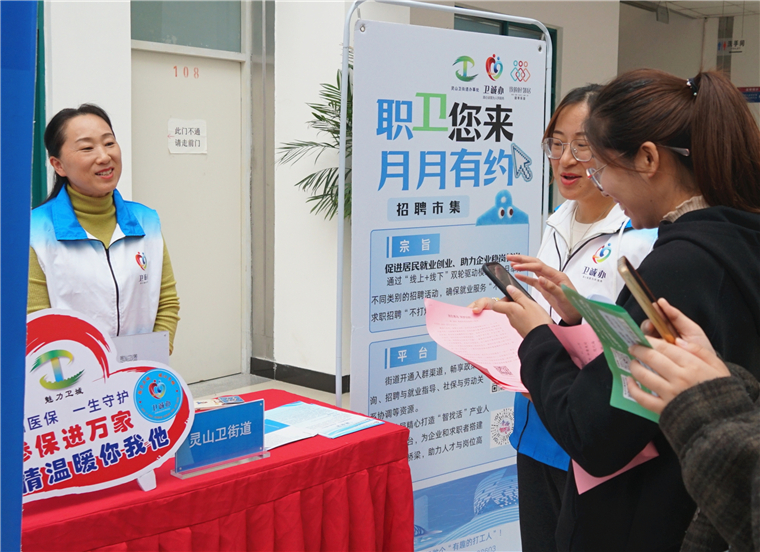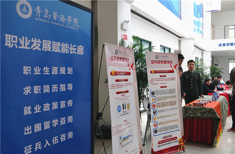 青岛西海岸新区人力资源和社会保障局、灵山卫街道的工作人员也来到现场,为同学们提供政策咨询服务。