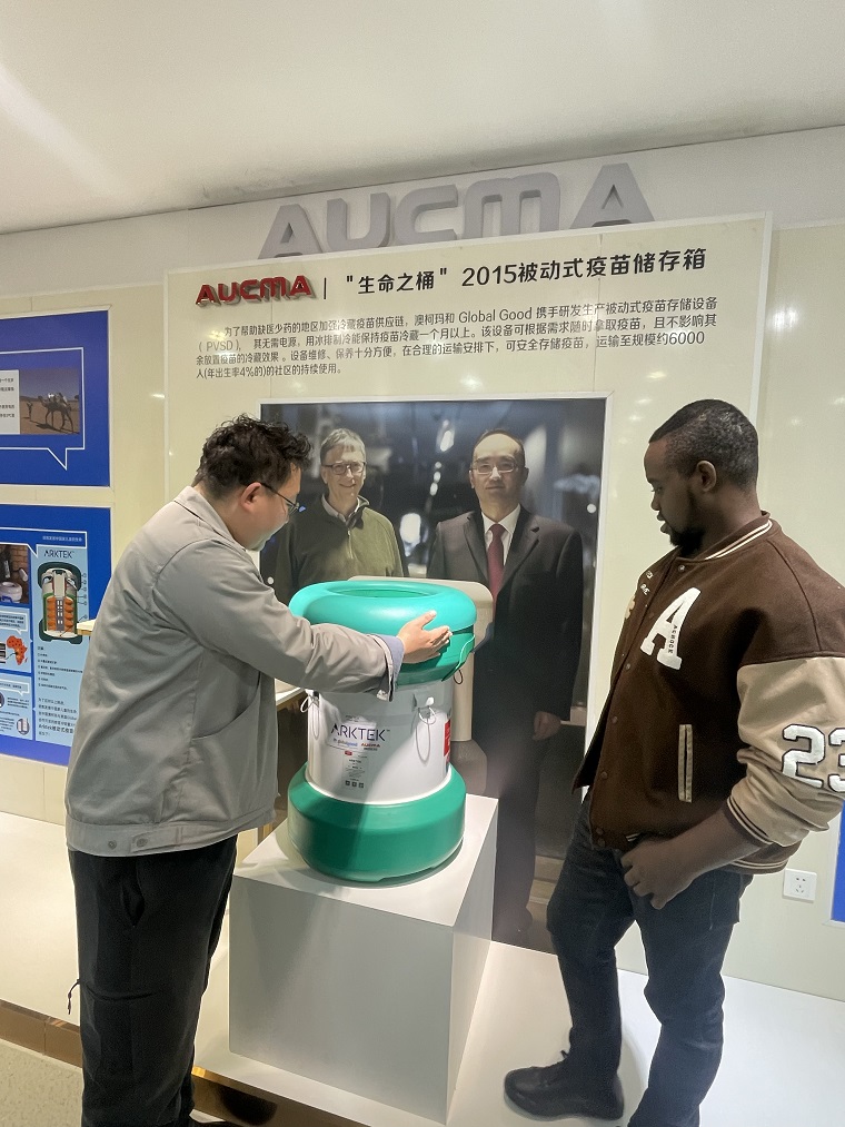 在“一带一路”倡议引领下,深化中非产能合作已成为重要方向。卢旺达作为共建“一带一路”的积极参与方,在能源基础设施与冷链物流等领域需求旺盛。11月5日下午,代表团到访青岛澳柯玛控股集团有限公司。作为国内外知名的冷链装备与新能源技术解决方案提供商,澳柯玛展示了其在新能源冷链技术等领域的创新成果。代表团重点参观了其新能源冷链技术展厅与智能化生产线,并就移动冷链储能设备等双方共同关注的技术领域进行了深入探讨。王可栋表示,青岛黄海学院希望携手澳柯玛这样的链主企业,共同探索面向“一带一路”国家的“技术+人才”协同输出模式。