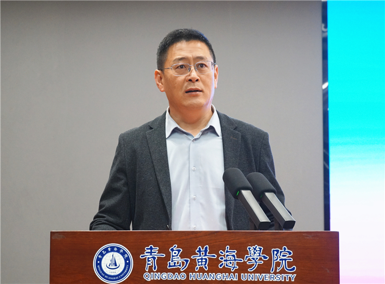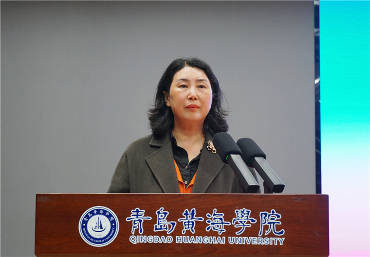 卜瑕副主席致辞,她表示科技自立自强是国家发展的战略支撑,而大学正是培养和造就高素质、创新型人才的摇篮。青岛黄海学院大学生科技文化节已传承十七届,是黄海科技文化创新的重要品牌。希望学校继续发挥产教融合发展优势,不断开创人才培养、知识创新的新局面,以更加昂扬的姿态迈进新征程、建功新时代。