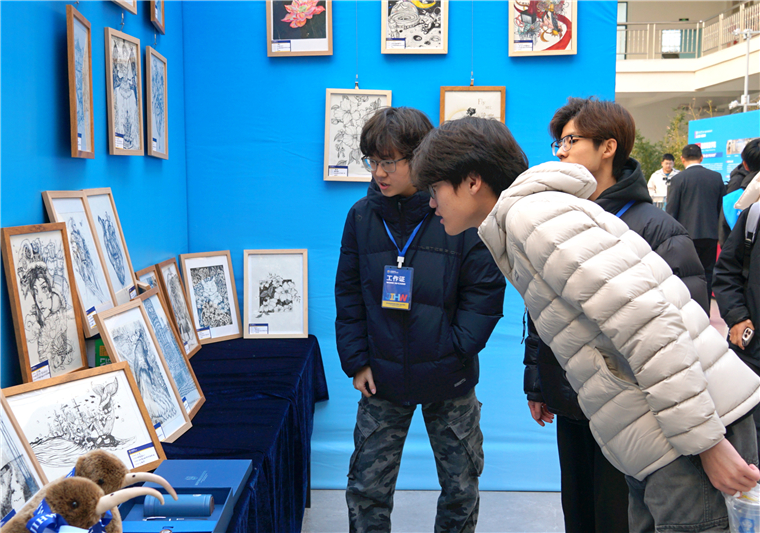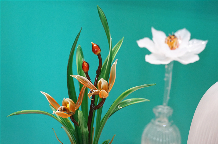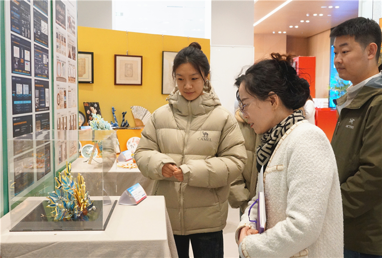 在创新创业文化展区,一组栩栩如生的琉璃花卉展品吸引了大家的目光。这组展品的作者,影视学院2025级动漫设计专业学生杨一帆介绍说:“我来自中国琉璃之乡淄博,师从齐鲁首席技师、山东省工艺美术大师宋苗。来到黄海学院求学,我想通过琉璃创业的想法也得到了学校的大力支持,为我提供了免费的工作室场地,还有今天科技文化节的展位,让我这个大一新生敢于迈出创业第一步。我认为玻璃是材质,琉璃是艺术,我有信心让传统琉璃技艺在校园生根发芽,甚至走向更大的舞台。”