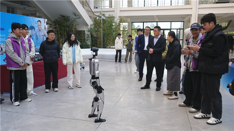 信息科学与工程学院的李晏道则展示了他们学院的人形机器人项目,他说:“我们在老师和校企合作导师的带领下对这个机器人进行了二次开发,目前它可以做出行走、敬礼、握手、比心、点赞等动作,还可以打太极。后续我们还将开发语言模块,进一步增强机器人的互动性。”