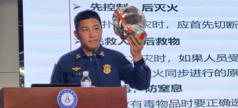 宣讲过程中,刘相林队长还分享了他亲身参与的惊险救援经历。从2021年东新村民房火灾中冒着生命危险排除燃气罐爆炸险情,到在各种水域救援比武中展现出的专业素养,再到长年累月深入基层进行的数百场安全宣传,一个个真实的故事,一幕幕惊心动魄的场景,生动诠释了一名消防指战员的忠诚、担当与奉献精神,也让在场师生对消防安全工作有了更为直观和深刻的认识,对“蓝朋友”这一群体肃然起敬。