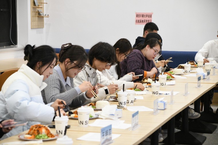 交流环节结束后,校领导与学生代表们共进晚餐。餐叙间,师生继续进行着亲切的交流。