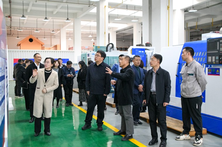 随后,孙振超一行先后参观了科技节文化作品展、创新工作室、现代加工技术实验室、工业机器人实训室、汽车维修实训室以及智能制造工场等场所。调研过程中,齐鲁首席技师、智能制造学院教师宋爱利向各位领导介绍了实训设备的运行情况及学生技能训练成果。孙振超副主席对我校先进的实训设施、浓厚的工匠文化氛围以及先进的教学模式给予了高度评价。