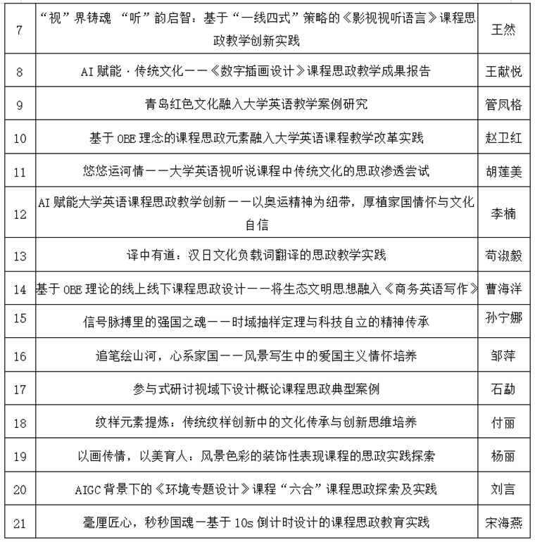 青岛黄海学院21项案例入选全国民办高校课程思政优秀案例