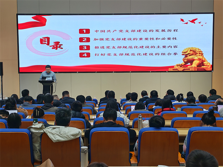 青岛理工大学党委组织部副部长王国华同志带来《新时代基层党组织标准化规范化建设》专题报告。王国华在基层党组织建设、党建科学化体系构建等方面成果丰硕,具有扎实的理论积淀与丰富的实践经验。报告中,他系统回顾了中国共产党支部建设的发展历程,从马列主义建党学说的理论源头,到“支部建在连上”的光荣传统,再到新时代党支部建设的新要求,清晰勾勒出党支部建设的历史脉络与时代特征。结合高校党建工作实际,王国华详细解读了党支部设置、成立程序、主要任务、工作制度等规范化建设核心内容,重点阐释了“三会一课”、主题党日、组织生活会等组织生活制度的具体要求与实施方法。他强调,要正确把握党建与党务、党建与业务的辩证关系,通过建立上下贯通的组织领导体系、强基固本的组织建设体系、选建培优的品牌创建体系等,推动党建工作与教学科研、育人工作深度融合,切实发挥党支部战斗堡垒作用和党员先锋模范作用。