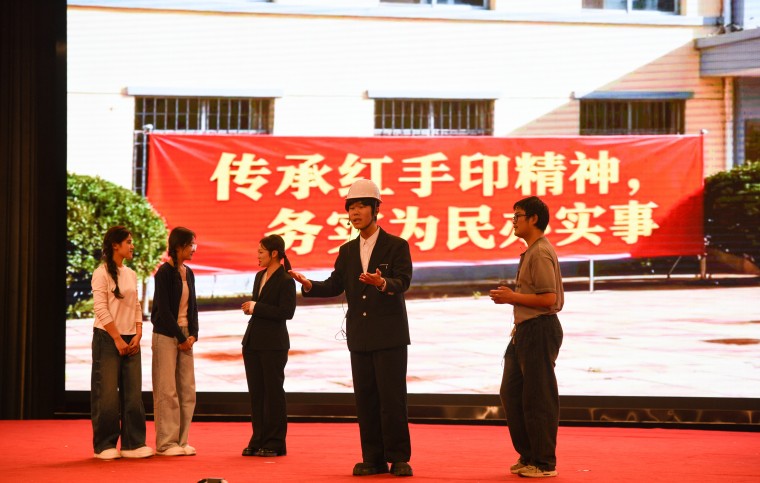 智慧城市工程学院带来的《青春之问 时空回响》,通过一场跨越百年的对话,重现了李大钊等革命先驱的觉醒奋斗之路,让当代青年与百年前的信仰产生强烈共鸣;设计与美术学院的《救亡之路》将时光倒流至1935年,再现了在民族存亡关头,热血青年冲破黑暗、呐喊救国的英勇身姿;信息科学与工程学院演绎的《红手印新征程》,生动还原了小岗村18位村民按下红手印的改革瞬间,诠释了敢为人先的创新精神;智能制造学院的《最后一班岗》则聚焦脱贫攻坚一线,讲述了驻村书记扎根基层、无私奉献的感人故事,展现了新时代共产党人的责任与担当。