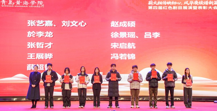 岁月铭刻奋斗足迹,光影映照赤诚初心。为深入学习贯彻习近平新时代中国特色社会主义思想,引导广大青年学子铭记党的光辉历程,12月12日晚,青岛黄海学院第四届“薪火相传映初心,风华赓续谱新篇”红色剧目展演暨表彰大会在学校体育馆隆重举行。党委委员、副校长刘纪新,副校长王鹏程,党委委员、纪委书记、学生工作部部长赵国光等学校领导以及相关部门负责人、各二级学院党总支书记、分管学生工作院长等出席活动。全校师生代表3000余人齐聚一堂,共同奔赴这场跨越时空的红色精神之约。