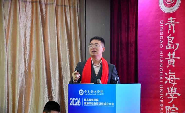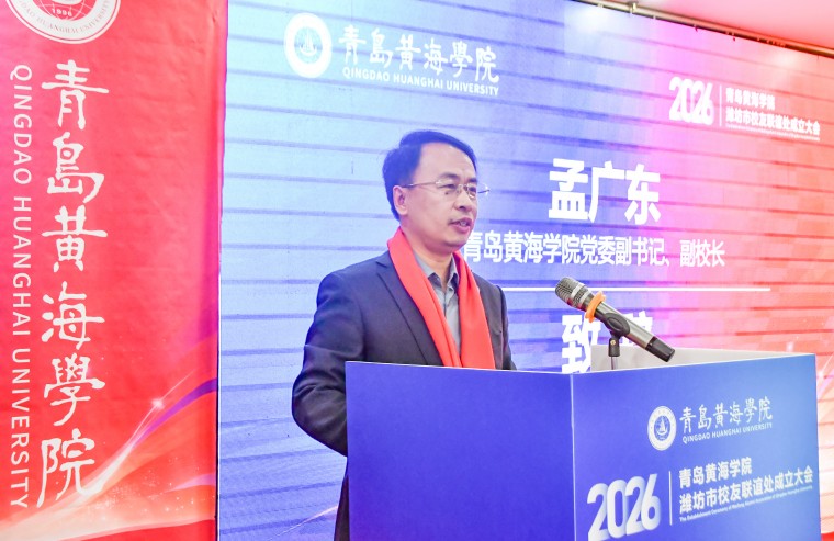 孟广东在致辞中代表学校向潍坊校友联谊处的成立表示热烈祝贺,并向长期以来关心支持母校发展的校友们致以诚挚感谢。他指出,潍坊作为历史底蕴深厚的文化名城和现代产业强市,其“崇文重教、务实笃行”的城市品格与母校“知行合一”的校训精神高度契合。他对联谊处未来发展寄予三点期望:一是做校友的“暖心家园”,通过多样化活动凝聚力量,让校友在互帮互助中实现共赢;二是做连接母校的“坚固桥梁”,推动信息互通与资源互补,促进母校与校友同频共振;三是做展示形象的“亮丽窗口”,立足潍坊、服务社会,彰显黄海人的责任与担当。他特别提到,今年学校将迎来建校30周年,诚挚邀请广大校友常回家看看,共襄校庆盛举。