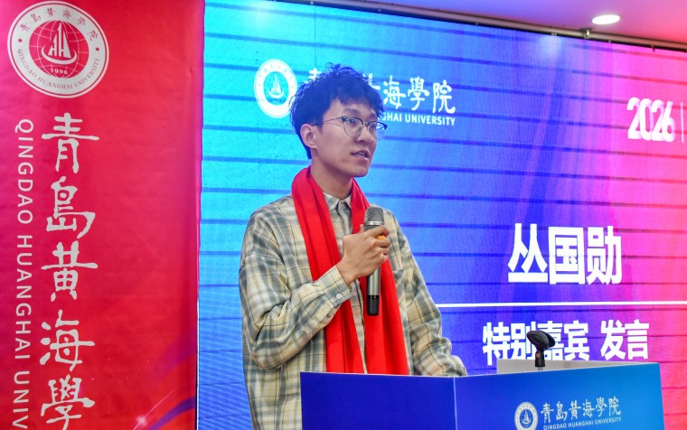 大会特别邀请2018级校友、国防科技大学博士研究生丛国勋发言。这位从黄海校园走出的青年才俊,深情讲述了自己从“创业达人”到“学术博士”的蜕变之路。他回忆了在校期间创业历程,在恩师的托举与鼓励下沉心向学,成功考入211高校并最终圆梦国防科大的励志经历,展现了黄海学子勇攀高峰、追求卓越的科研精神。